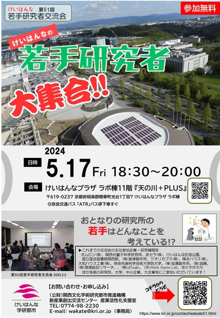 けいはんな学研都市に立地する企業・研究機関・大学院などの若手研究者が、フェイス・トゥ・フェイスで自由に意見交換し、異なった分野の方々とも交流を深める若手研究者交流会。